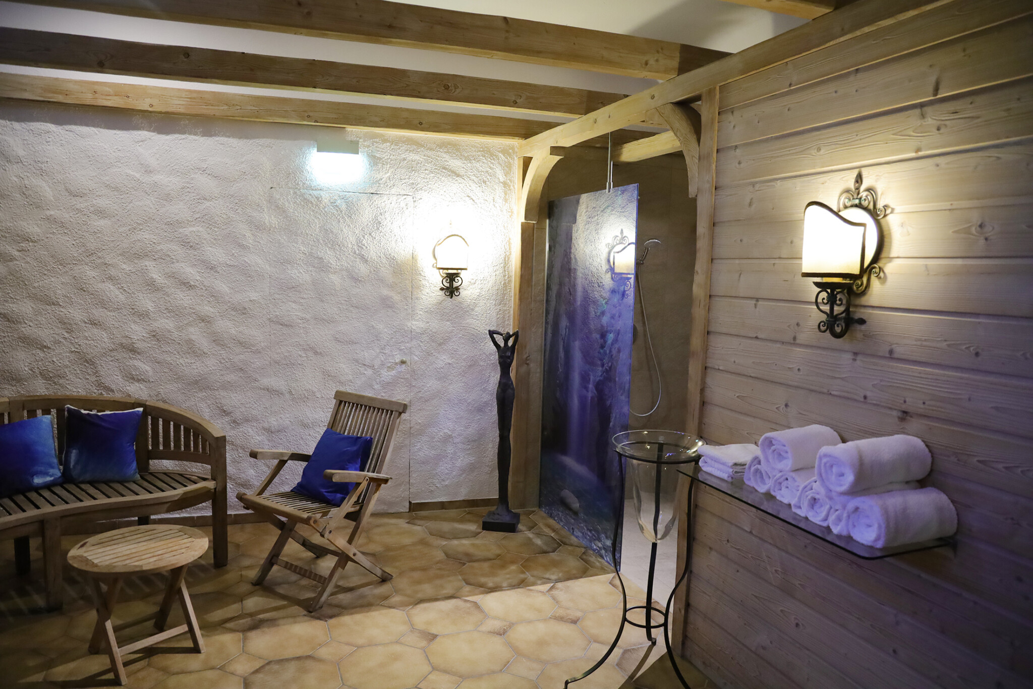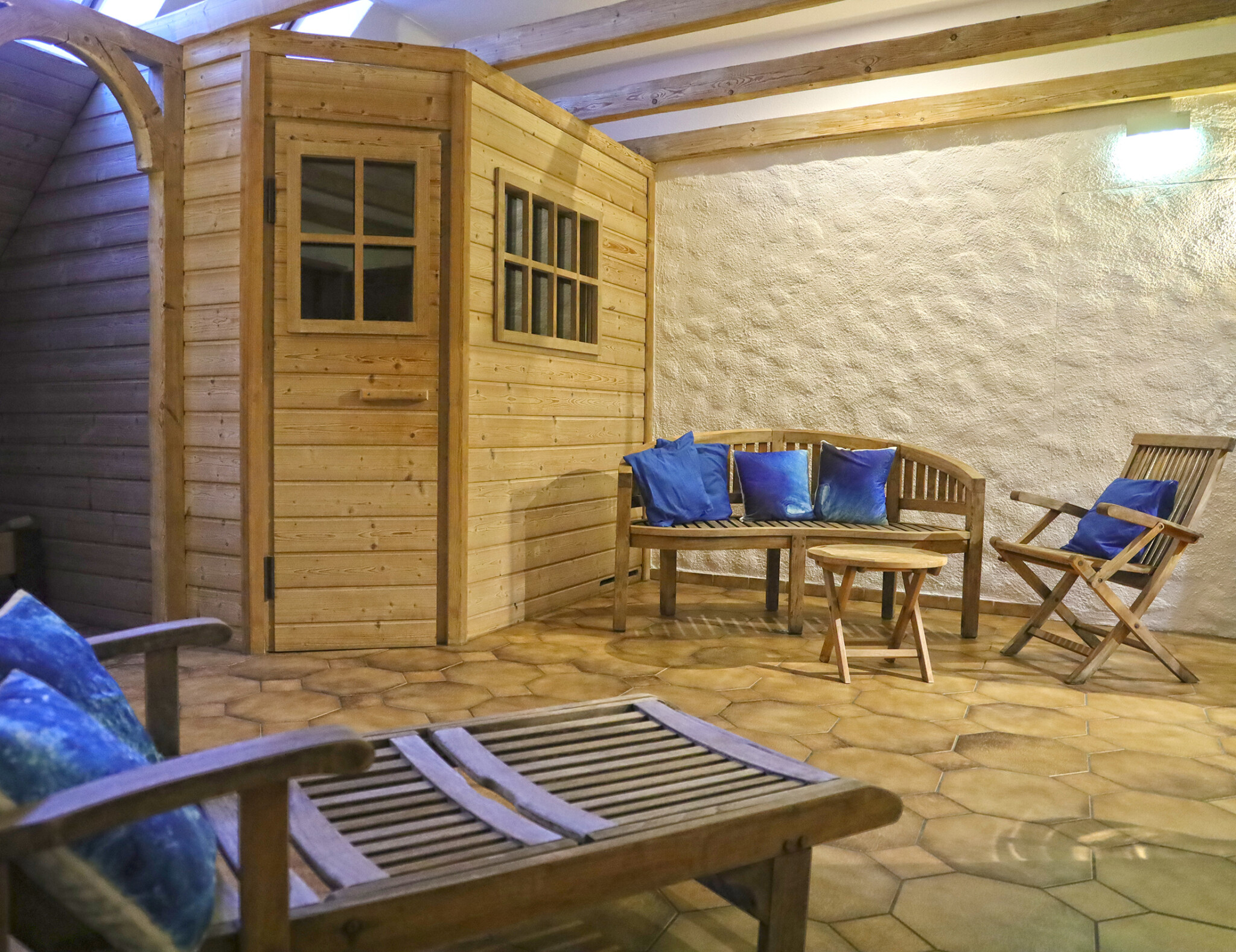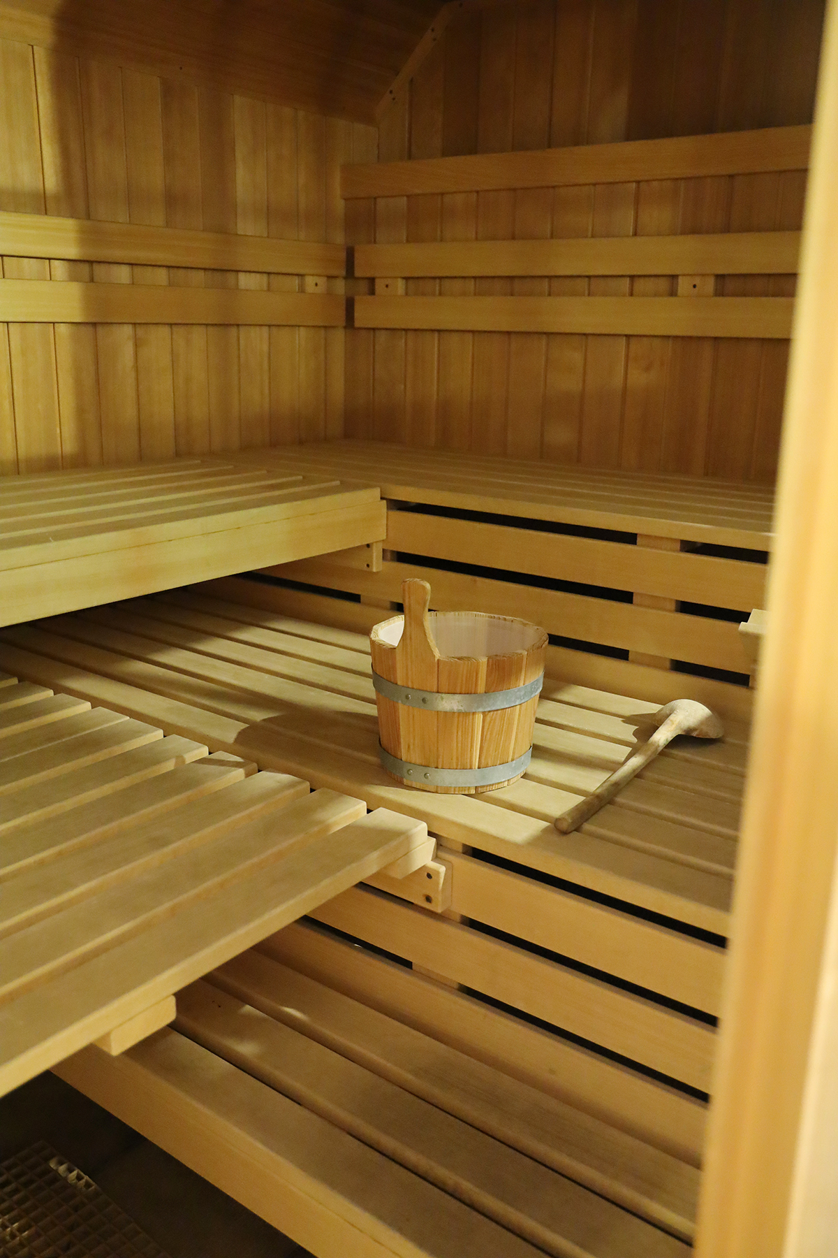 Holen Sie sich frische Energie in unserer hauseigenen 90°C Sauna mit Ruhe- und Relaxbereich. Kuschelige Handtücher liegen bereit. Eine Erlebnisdusche sorgt für Abkühlung.